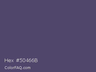 Hex #50466b Color is a normal indigo color and the nearest color is Mulled Wine #4e4562. Hex code #50466b and RGB value is rgb(80,70,107). In RGB color space, this color is composed of 31% red, 27% green, 42% blue, In CMYK color space, this color is composed of 25% cyan, 35% magenta, 0% yellow , 58% black , In HSL color space, this color has a hue angle of 256° , 21% saturation and 35% lightness.
