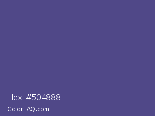 Hex #504888 Color is a normal indigo color and the nearest color is Victoria #534491. Hex code #504888 and RGB value is rgb(80,72,136). In RGB color space, this color is composed of 31% red, 28% green, 53% blue, In CMYK color space, this color is composed of 41% cyan, 47% magenta, 0% yellow , 47% black , In HSL color space, this color has a hue angle of 248° , 31% saturation and 41% lightness.