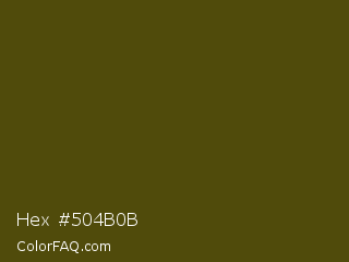 Hex #504b0b Color is a very dark yellow color and the nearest color is Bronze Olive #4e420c. Hex code #504b0b and RGB value is rgb(80,75,11). In RGB color space, this color is composed of 31% red, 29% green, 4% blue, In CMYK color space, this color is composed of 0% cyan, 6% magenta, 86% yellow , 69% black , In HSL color space, this color has a hue angle of 56° , 76% saturation and 18% lightness.