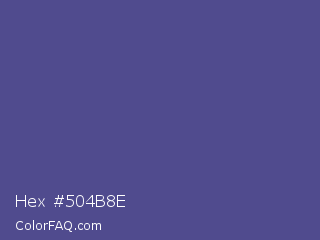 Hex #504b8e Color is a normal indigo color and the nearest color is Victoria #534491. Hex code #504b8e and RGB value is rgb(80,75,142). In RGB color space, this color is composed of 31% red, 29% green, 56% blue, In CMYK color space, this color is composed of 44% cyan, 47% magenta, 0% yellow , 44% black , In HSL color space, this color has a hue angle of 244° , 31% saturation and 43% lightness.