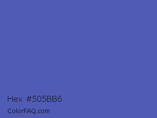 Hex #505bb6 Color is a normal blue color and the nearest color is Liberty #545aa7. Hex code #505bb6 and RGB value is rgb(80,91,182). In RGB color space, this color is composed of 31% red, 36% green, 71% blue, In CMYK color space, this color is composed of 56% cyan, 50% magenta, 0% yellow , 29% black , In HSL color space, this color has a hue angle of 234° , 41% saturation and 51% lightness.