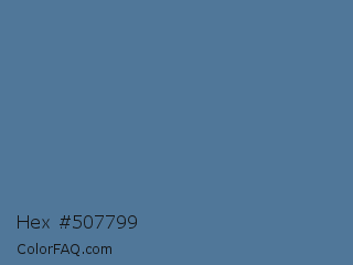 Hex #507799 Color is a normal blue color and the nearest color is Kashmir Blue #507096. Hex code #507799 and RGB value is rgb(80,119,153). In RGB color space, this color is composed of 31% red, 47% green, 60% blue, In CMYK color space, this color is composed of 48% cyan, 22% magenta, 0% yellow , 40% black , In HSL color space, this color has a hue angle of 208° , 31% saturation and 46% lightness.