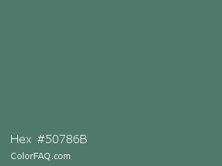 Hex #50786b Color is a normal green color and the nearest color is Como #517c66. Hex code #50786b and RGB value is rgb(80,120,107). In RGB color space, this color is composed of 31% red, 47% green, 42% blue, In CMYK color space, this color is composed of 33% cyan, 0% magenta, 11% yellow , 53% black , In HSL color space, this color has a hue angle of 161° , 20% saturation and 39% lightness.