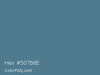 Hex #507b8e Color is a normal blue color and the nearest color is Smalt Blue #51808f. Hex code #507b8e and RGB value is rgb(80,123,142). In RGB color space, this color is composed of 31% red, 48% green, 56% blue, In CMYK color space, this color is composed of 44% cyan, 13% magenta, 0% yellow , 44% black , In HSL color space, this color has a hue angle of 198° , 28% saturation and 44% lightness.