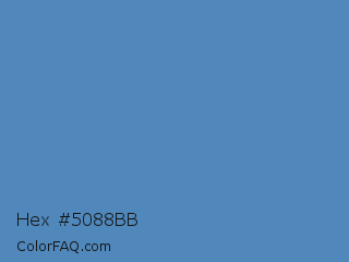 Hex #5088bb Color is a normal blue color and the nearest color is Cyan Azure #4e82b4. Hex code #5088bb and RGB value is rgb(80,136,187). In RGB color space, this color is composed of 31% red, 53% green, 73% blue, In CMYK color space, this color is composed of 57% cyan, 27% magenta, 0% yellow , 27% black , In HSL color space, this color has a hue angle of 209° , 44% saturation and 52% lightness.