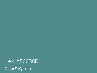 Hex #508b8d Color is a normal cyan color and the nearest color is Smalt Blue #51808f. Hex code #508b8d and RGB value is rgb(80,139,141). In RGB color space, this color is composed of 31% red, 55% green, 55% blue, In CMYK color space, this color is composed of 43% cyan, 1% magenta, 0% yellow , 45% black , In HSL color space, this color has a hue angle of 182° , 28% saturation and 43% lightness.