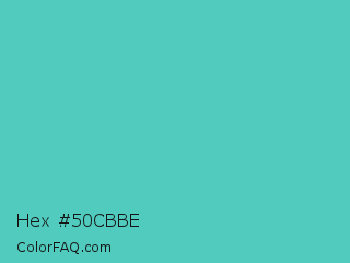 Hex #50cbbe Color is a normal cyan color and the nearest color is Medium Turquoise #48d1cc. Hex code #50cbbe and RGB value is rgb(80,203,190). In RGB color space, this color is composed of 31% red, 80% green, 75% blue, In CMYK color space, this color is composed of 61% cyan, 0% magenta, 6% yellow , 20% black , In HSL color space, this color has a hue angle of 174° , 54% saturation and 55% lightness.