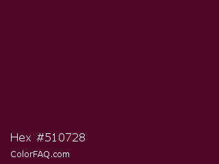 Hex #510728 Color is a very dark rose color and the nearest color is Castro #52001f. Hex code #510728 and RGB value is rgb(81,7,40). In RGB color space, this color is composed of 32% red, 3% green, 16% blue, In CMYK color space, this color is composed of 0% cyan, 91% magenta, 51% yellow , 68% black , In HSL color space, this color has a hue angle of 333° , 84% saturation and 17% lightness.