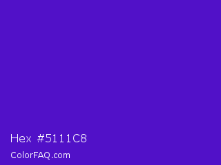 Hex #5111c8 Color is a normal violet color and the nearest color is Interdimensional Blue #360ccc. Hex code #5111c8 and RGB value is rgb(81,17,200). In RGB color space, this color is composed of 32% red, 7% green, 78% blue, In CMYK color space, this color is composed of 60% cyan, 92% magenta, 0% yellow , 22% black , In HSL color space, this color has a hue angle of 261° , 84% saturation and 43% lightness.