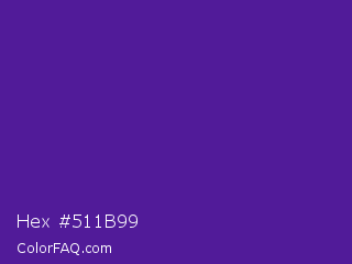 Hex #511b99 Color is a normal violet color and the nearest color is Daisy Bush #4f2398. Hex code #511b99 and RGB value is rgb(81,27,153). In RGB color space, this color is composed of 32% red, 11% green, 60% blue, In CMYK color space, this color is composed of 47% cyan, 82% magenta, 0% yellow , 40% black , In HSL color space, this color has a hue angle of 266° , 70% saturation and 35% lightness.