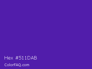 Hex #511dab Color is a normal violet color and the nearest color is Daisy Bush #4f2398. Hex code #511dab and RGB value is rgb(81,29,171). In RGB color space, this color is composed of 32% red, 11% green, 67% blue, In CMYK color space, this color is composed of 53% cyan, 83% magenta, 0% yellow , 33% black , In HSL color space, this color has a hue angle of 262° , 71% saturation and 39% lightness.