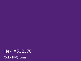 Hex #512178 Color is a dark purple color and the nearest color is Honey Flower #4f1c70. Hex code #512178 and RGB value is rgb(81,33,120). In RGB color space, this color is composed of 32% red, 13% green, 47% blue, In CMYK color space, this color is composed of 33% cyan, 73% magenta, 0% yellow , 53% black , In HSL color space, this color has a hue angle of 273° , 57% saturation and 30% lightness.