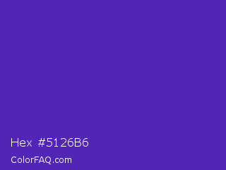 Hex #5126b6 Color is a normal indigo color and the nearest color is Purple Heart Crayola #652dc1. Hex code #5126b6 and RGB value is rgb(81,38,182). In RGB color space, this color is composed of 32% red, 15% green, 71% blue, In CMYK color space, this color is composed of 55% cyan, 79% magenta, 0% yellow , 29% black , In HSL color space, this color has a hue angle of 258° , 65% saturation and 43% lightness.