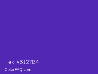 Hex #5127b4 Color is a normal indigo color and the nearest color is Purple Heart Crayola #652dc1. Hex code #5127b4 and RGB value is rgb(81,39,180). In RGB color space, this color is composed of 32% red, 15% green, 71% blue, In CMYK color space, this color is composed of 55% cyan, 78% magenta, 0% yellow , 29% black , In HSL color space, this color has a hue angle of 258° , 64% saturation and 43% lightness.