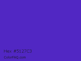 Hex #5127c3 Color is a normal indigo color and the nearest color is Purple Heart Crayola #652dc1. Hex code #5127c3 and RGB value is rgb(81,39,195). In RGB color space, this color is composed of 32% red, 15% green, 76% blue, In CMYK color space, this color is composed of 58% cyan, 80% magenta, 0% yellow , 24% black , In HSL color space, this color has a hue angle of 256° , 67% saturation and 46% lightness.