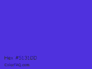 Hex #5131dd Color is a normal indigo color and the nearest color is Iris #5a4fcf. Hex code #5131dd and RGB value is rgb(81,49,221). In RGB color space, this color is composed of 32% red, 19% green, 87% blue, In CMYK color space, this color is composed of 63% cyan, 78% magenta, 0% yellow , 13% black , In HSL color space, this color has a hue angle of 251° , 72% saturation and 53% lightness.