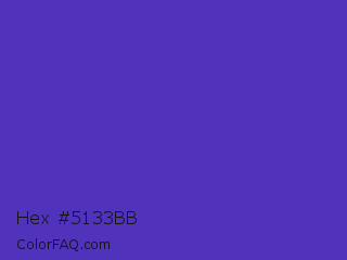 Hex #5133bb Color is a normal indigo color and the nearest color is Ocean Blue #4f42b5. Hex code #5133bb and RGB value is rgb(81,51,187). In RGB color space, this color is composed of 32% red, 20% green, 73% blue, In CMYK color space, this color is composed of 57% cyan, 73% magenta, 0% yellow , 27% black , In HSL color space, this color has a hue angle of 253° , 57% saturation and 47% lightness.