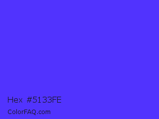 Hex #5133fe Color is a normal indigo color and the nearest color is Han Purple #5218fa. Hex code #5133fe and RGB value is rgb(81,51,254). In RGB color space, this color is composed of 32% red, 20% green, 100% blue, In CMYK color space, this color is composed of 68% cyan, 80% magenta, 0% yellow , 0% black , In HSL color space, this color has a hue angle of 249° , 99% saturation and 60% lightness.