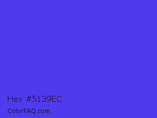 Hex #5139ec Color is a normal indigo color and the nearest color is Majorelle Blue #6050dc. Hex code #5139ec and RGB value is rgb(81,57,236). In RGB color space, this color is composed of 32% red, 22% green, 93% blue, In CMYK color space, this color is composed of 66% cyan, 76% magenta, 0% yellow , 7% black , In HSL color space, this color has a hue angle of 248° , 82% saturation and 57% lightness.