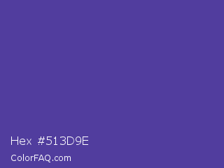 Hex #513d9e Color is a normal indigo color and the nearest color is Gigas #523c94. Hex code #513d9e and RGB value is rgb(81,61,158). In RGB color space, this color is composed of 32% red, 24% green, 62% blue, In CMYK color space, this color is composed of 49% cyan, 61% magenta, 0% yellow , 38% black , In HSL color space, this color has a hue angle of 252° , 44% saturation and 43% lightness.