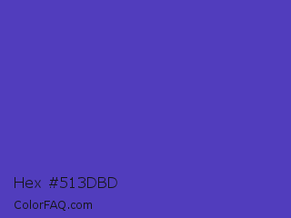 Hex #513dbd Color is a normal indigo color and the nearest color is Ocean Blue #4f42b5. Hex code #513dbd and RGB value is rgb(81,61,189). In RGB color space, this color is composed of 32% red, 24% green, 74% blue, In CMYK color space, this color is composed of 57% cyan, 68% magenta, 0% yellow , 26% black , In HSL color space, this color has a hue angle of 249° , 51% saturation and 49% lightness.