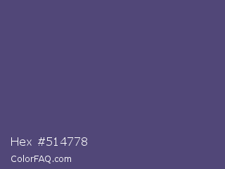 Hex #514778 Color is a normal indigo color and the nearest color is Cyber Grape #58427c. Hex code #514778 and RGB value is rgb(81,71,120). In RGB color space, this color is composed of 32% red, 28% green, 47% blue, In CMYK color space, this color is composed of 33% cyan, 41% magenta, 0% yellow , 53% black , In HSL color space, this color has a hue angle of 252° , 26% saturation and 37% lightness.