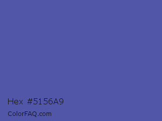 Hex #5156a9 Color is a normal blue color and the nearest color is Liberty #545aa7. Hex code #5156a9 and RGB value is rgb(81,86,169). In RGB color space, this color is composed of 32% red, 34% green, 66% blue, In CMYK color space, this color is composed of 52% cyan, 49% magenta, 0% yellow , 34% black , In HSL color space, this color has a hue angle of 237° , 35% saturation and 49% lightness.