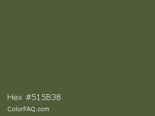 Hex #515b38 Color is a dark lime color and the nearest color is Verdigris #5d5e37. Hex code #515b38 and RGB value is rgb(81,91,56). In RGB color space, this color is composed of 32% red, 36% green, 22% blue, In CMYK color space, this color is composed of 11% cyan, 0% magenta, 38% yellow , 64% black , In HSL color space, this color has a hue angle of 77° , 24% saturation and 29% lightness.