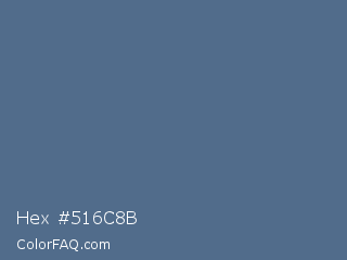 Hex #516c8b Color is a normal blue color and the nearest color is UCLA Blue #536895. Hex code #516c8b and RGB value is rgb(81,108,139). In RGB color space, this color is composed of 32% red, 42% green, 55% blue, In CMYK color space, this color is composed of 42% cyan, 22% magenta, 0% yellow , 45% black , In HSL color space, this color has a hue angle of 212° , 26% saturation and 43% lightness.