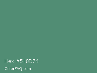 Hex #518d74 Color is a normal green color and the nearest color is Wintergreen Dream #56887d. Hex code #518d74 and RGB value is rgb(81,141,116). In RGB color space, this color is composed of 32% red, 55% green, 45% blue, In CMYK color space, this color is composed of 43% cyan, 0% magenta, 18% yellow , 45% black , In HSL color space, this color has a hue angle of 155° , 27% saturation and 44% lightness.