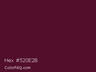 Hex #520e2b Color is a very dark rose color and the nearest color is Blackberry #4d0135. Hex code #520e2b and RGB value is rgb(82,14,43). In RGB color space, this color is composed of 32% red, 5% green, 17% blue, In CMYK color space, this color is composed of 0% cyan, 83% magenta, 48% yellow , 68% black , In HSL color space, this color has a hue angle of 334° , 71% saturation and 19% lightness.