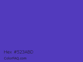Hex #523abd Color is a normal indigo color and the nearest color is Ocean Blue #4f42b5. Hex code #523abd and RGB value is rgb(82,58,189). In RGB color space, this color is composed of 32% red, 23% green, 74% blue, In CMYK color space, this color is composed of 57% cyan, 69% magenta, 0% yellow , 26% black , In HSL color space, this color has a hue angle of 251° , 53% saturation and 48% lightness.