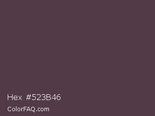 Hex #523b46 Color is a dark rose color and the nearest color is Matterhorn #4e3b41. Hex code #523b46 and RGB value is rgb(82,59,70). In RGB color space, this color is composed of 32% red, 23% green, 27% blue, In CMYK color space, this color is composed of 0% cyan, 28% magenta, 15% yellow , 68% black , In HSL color space, this color has a hue angle of 331° , 16% saturation and 28% lightness.