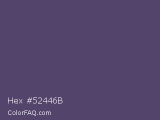 Hex #52446b Color is a normal violet color and the nearest color is Mulled Wine #4e4562. Hex code #52446b and RGB value is rgb(82,68,107). In RGB color space, this color is composed of 32% red, 27% green, 42% blue, In CMYK color space, this color is composed of 23% cyan, 36% magenta, 0% yellow , 58% black , In HSL color space, this color has a hue angle of 262° , 22% saturation and 34% lightness.