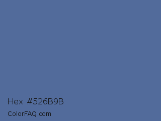 Hex #526b9b Color is a normal blue color and the nearest color is UCLA Blue #536895. Hex code #526b9b and RGB value is rgb(82,107,155). In RGB color space, this color is composed of 32% red, 42% green, 61% blue, In CMYK color space, this color is composed of 47% cyan, 31% magenta, 0% yellow , 39% black , In HSL color space, this color has a hue angle of 219° , 31% saturation and 46% lightness.
