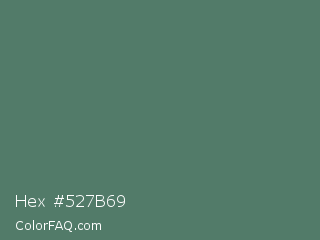 Hex #527b69 Color is a normal green color and the nearest color is Como #517c66. Hex code #527b69 and RGB value is rgb(82,123,105). In RGB color space, this color is composed of 32% red, 48% green, 41% blue, In CMYK color space, this color is composed of 33% cyan, 0% magenta, 15% yellow , 52% black , In HSL color space, this color has a hue angle of 154° , 20% saturation and 40% lightness.