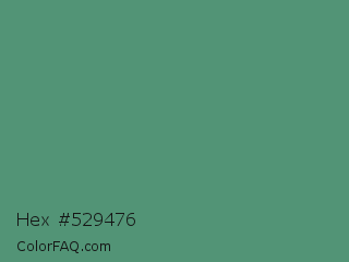 Hex #529476 Color is a normal green color and the nearest color is Wintergreen Dream #56887d. Hex code #529476 and RGB value is rgb(82,148,118). In RGB color space, this color is composed of 32% red, 58% green, 46% blue, In CMYK color space, this color is composed of 45% cyan, 0% magenta, 20% yellow , 42% black , In HSL color space, this color has a hue angle of 153° , 29% saturation and 45% lightness.