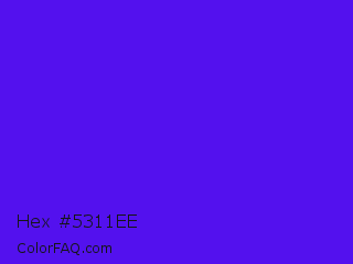 Hex #5311ee Color is a normal indigo color and the nearest color is Han Purple #5218fa. Hex code #5311ee and RGB value is rgb(83,17,238). In RGB color space, this color is composed of 33% red, 7% green, 93% blue, In CMYK color space, this color is composed of 65% cyan, 93% magenta, 0% yellow , 7% black , In HSL color space, this color has a hue angle of 258° , 87% saturation and 50% lightness.