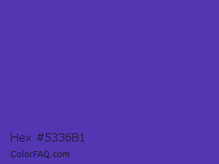 Hex #5336b1 Color is a normal indigo color and the nearest color is Ocean Blue #4f42b5. Hex code #5336b1 and RGB value is rgb(83,54,177). In RGB color space, this color is composed of 33% red, 21% green, 69% blue, In CMYK color space, this color is composed of 53% cyan, 69% magenta, 0% yellow , 31% black , In HSL color space, this color has a hue angle of 254° , 53% saturation and 45% lightness.