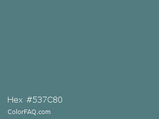 Hex #537c80 Color is a normal cyan color and the nearest color is Wintergreen Dream #56887d. Hex code #537c80 and RGB value is rgb(83,124,128). In RGB color space, this color is composed of 33% red, 49% green, 50% blue, In CMYK color space, this color is composed of 35% cyan, 3% magenta, 0% yellow , 50% black , In HSL color space, this color has a hue angle of 185° , 21% saturation and 41% lightness.