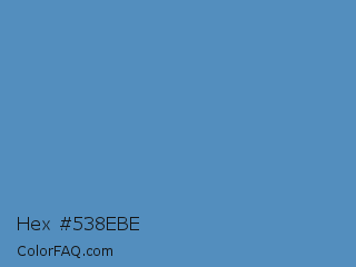 Hex #538ebe Color is a normal blue color and the nearest color is Silver Lake Blue #5d89ba. Hex code #538ebe and RGB value is rgb(83,142,190). In RGB color space, this color is composed of 33% red, 56% green, 75% blue, In CMYK color space, this color is composed of 56% cyan, 25% magenta, 0% yellow , 25% black , In HSL color space, this color has a hue angle of 207° , 45% saturation and 54% lightness.