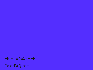 Hex #542eff Color is a normal indigo color and the nearest color is Han Purple #5218fa. Hex code #542eff and RGB value is rgb(84,46,255). In RGB color space, this color is composed of 33% red, 18% green, 100% blue, In CMYK color space, this color is composed of 67% cyan, 82% magenta, 0% yellow , 0% black , In HSL color space, this color has a hue angle of 251° , 100% saturation and 59% lightness.