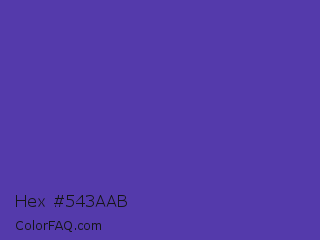 Hex #543aab Color is a normal indigo color and the nearest color is Ocean Blue #4f42b5. Hex code #543aab and RGB value is rgb(84,58,171). In RGB color space, this color is composed of 33% red, 23% green, 67% blue, In CMYK color space, this color is composed of 51% cyan, 66% magenta, 0% yellow , 33% black , In HSL color space, this color has a hue angle of 254° , 49% saturation and 45% lightness.
