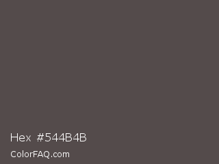 Hex #544b4b Color is a normal red color and the nearest color is Dark Liver #534b4f. Hex code #544b4b and RGB value is rgb(84,75,75). In RGB color space, this color is composed of 33% red, 29% green, 29% blue, In CMYK color space, this color is composed of 0% cyan, 11% magenta, 11% yellow , 67% black , In HSL color space, this color has a hue angle of 0° , 6% saturation and 31% lightness.