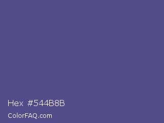 Hex #544b8b Color is a normal indigo color and the nearest color is Victoria #534491. Hex code #544b8b and RGB value is rgb(84,75,139). In RGB color space, this color is composed of 33% red, 29% green, 55% blue, In CMYK color space, this color is composed of 40% cyan, 46% magenta, 0% yellow , 45% black , In HSL color space, this color has a hue angle of 248° , 30% saturation and 42% lightness.