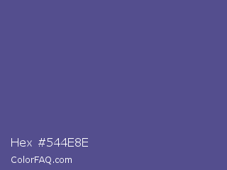 Hex #544e8e Color is a normal indigo color and the nearest color is Victoria #534491. Hex code #544e8e and RGB value is rgb(84,78,142). In RGB color space, this color is composed of 33% red, 31% green, 56% blue, In CMYK color space, this color is composed of 41% cyan, 45% magenta, 0% yellow , 44% black , In HSL color space, this color has a hue angle of 246° , 29% saturation and 43% lightness.