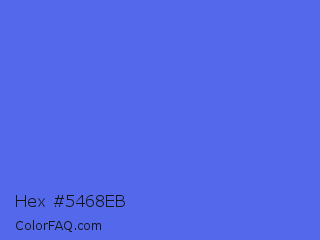 Hex #5468eb Color is a light blue color and the nearest color is Royal Blue #4169e1. Hex code #5468eb and RGB value is rgb(84,104,235). In RGB color space, this color is composed of 33% red, 41% green, 92% blue, In CMYK color space, this color is composed of 64% cyan, 56% magenta, 0% yellow , 8% black , In HSL color space, this color has a hue angle of 232° , 79% saturation and 63% lightness.