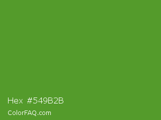 Hex #549b2b Color is a normal green color and the nearest color is Maximum Green #5e8c31. Hex code #549b2b and RGB value is rgb(84,155,43). In RGB color space, this color is composed of 33% red, 61% green, 17% blue, In CMYK color space, this color is composed of 46% cyan, 0% magenta, 72% yellow , 39% black , In HSL color space, this color has a hue angle of 98° , 57% saturation and 39% lightness.