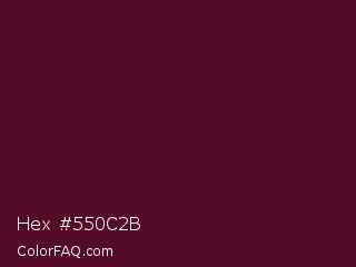 Hex #550c2b Color is a very dark rose color and the nearest color is Mulberry Wood #5c0536. Hex code #550c2b and RGB value is rgb(85,12,43). In RGB color space, this color is composed of 33% red, 5% green, 17% blue, In CMYK color space, this color is composed of 0% cyan, 86% magenta, 49% yellow , 67% black , In HSL color space, this color has a hue angle of 335° , 75% saturation and 19% lightness.