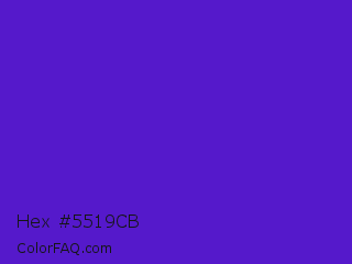 Hex #5519cb Color is a normal indigo color and the nearest color is Purple Heart Crayola #652dc1. Hex code #5519cb and RGB value is rgb(85,25,203). In RGB color space, this color is composed of 33% red, 10% green, 80% blue, In CMYK color space, this color is composed of 58% cyan, 88% magenta, 0% yellow , 20% black , In HSL color space, this color has a hue angle of 260° , 78% saturation and 45% lightness.